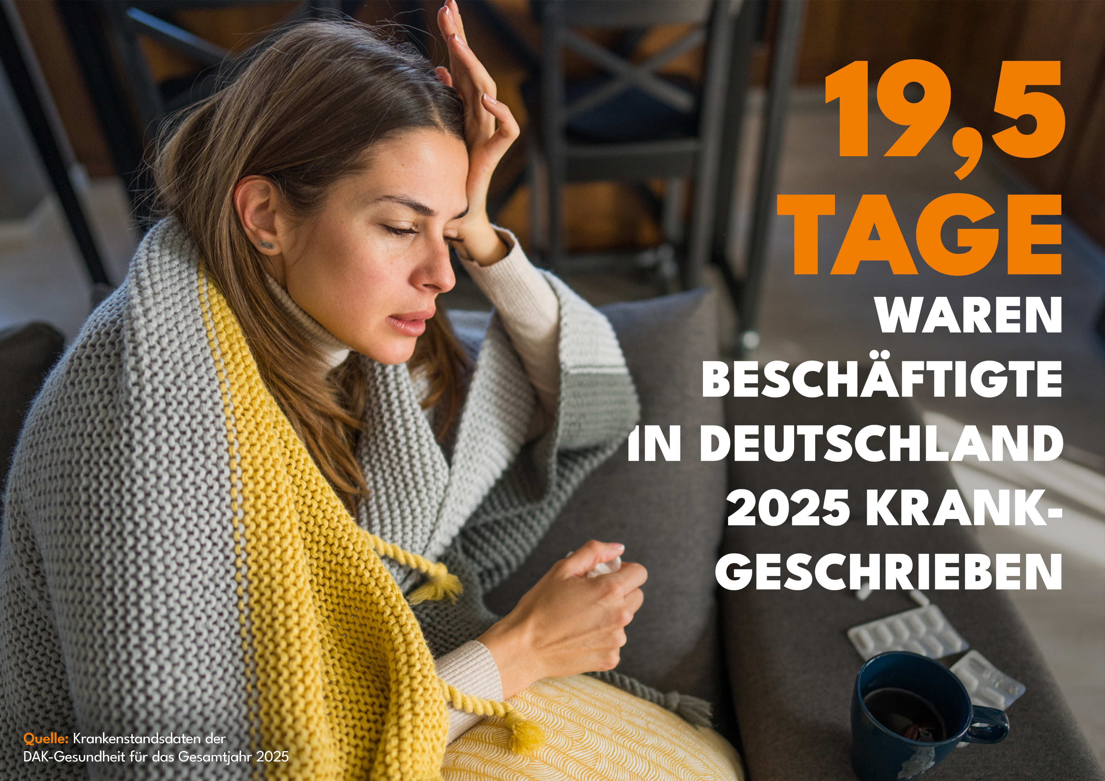 • Krankenstands-Analyse 2025 der DAK-Gesundheit zeigt: Mit 19,5 Fehltagen pro Kopf bleibt Krankenstand auf anhaltend hohem Niveau