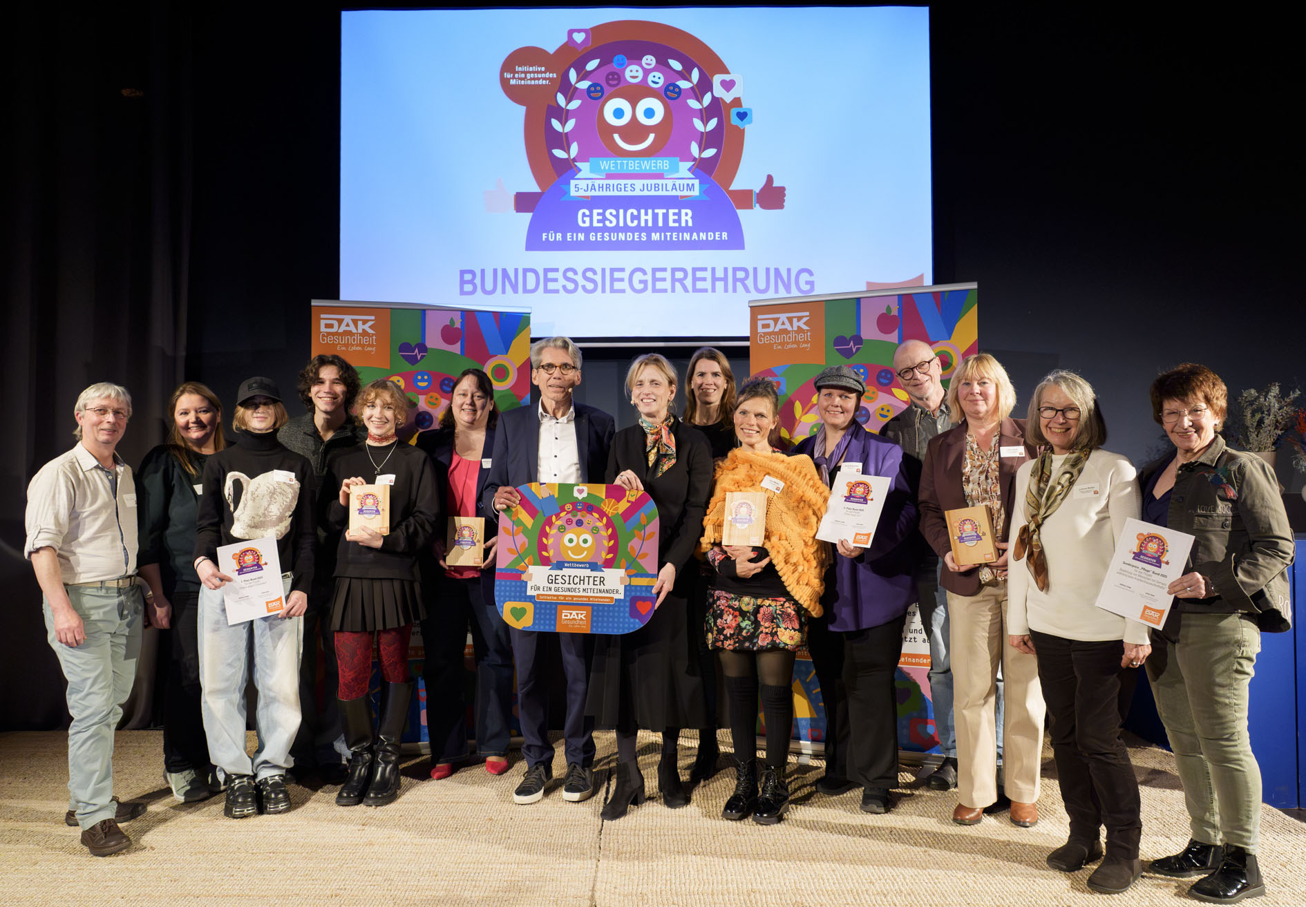 Beim DAK-Wettbewerb „Gesichter für ein gesundes Miteinander“ wurden im Herbst aus rund 500 Bewerbungen von Gruppen, Vereinen und Initiativen 16 Landessieger ermittelt. Sechs von der Bundesjury ausgewählte Favoriten waren zum Finale nach Berlin eingeladen. Den Bundessieg holte sich Dorothee van den Borre aus Nordrhein-Westfalen. Ihr Projekt „Clowns gegen Einsamkeit“ bringt Kinder und Jugendliche mit Flucht-, Behinderungs- oder Benachteiligungserfahrungen zusammen. Sie erlernen in Workshops mit einem Zirkuspädagogen Clownerie und Zauberei, die sie anschließend in Pflegeeinrichtungen präsentieren. „Mit Humor, Einfühlungsvermögen und Herzlichkeit schenken die jungen Clowns den Bewohnerinnen und Bewohnern Momente der Freude“, so die Jurybegründung. „Dem Projekt gelingt es, eine Verbindung zwischen den Generationen und unterschiedlichen Lebensumfeldern zu schaffen. Es verknüpft zwei Enden zu einer runden Sache, indem es die Selbstwirksamkeit und das Selbstwertgefühl der Kinder stärkt und gleichzeitig die Isolation der Seniorinnen und Senioren in Pflegeeinrichtungen durchbricht.“ Vor allem die explizite Ansprache von Kindern mit Behinderung sei beachtlich, denn diese seien in der Gesellschaft oftmals nicht sichtbar genug.