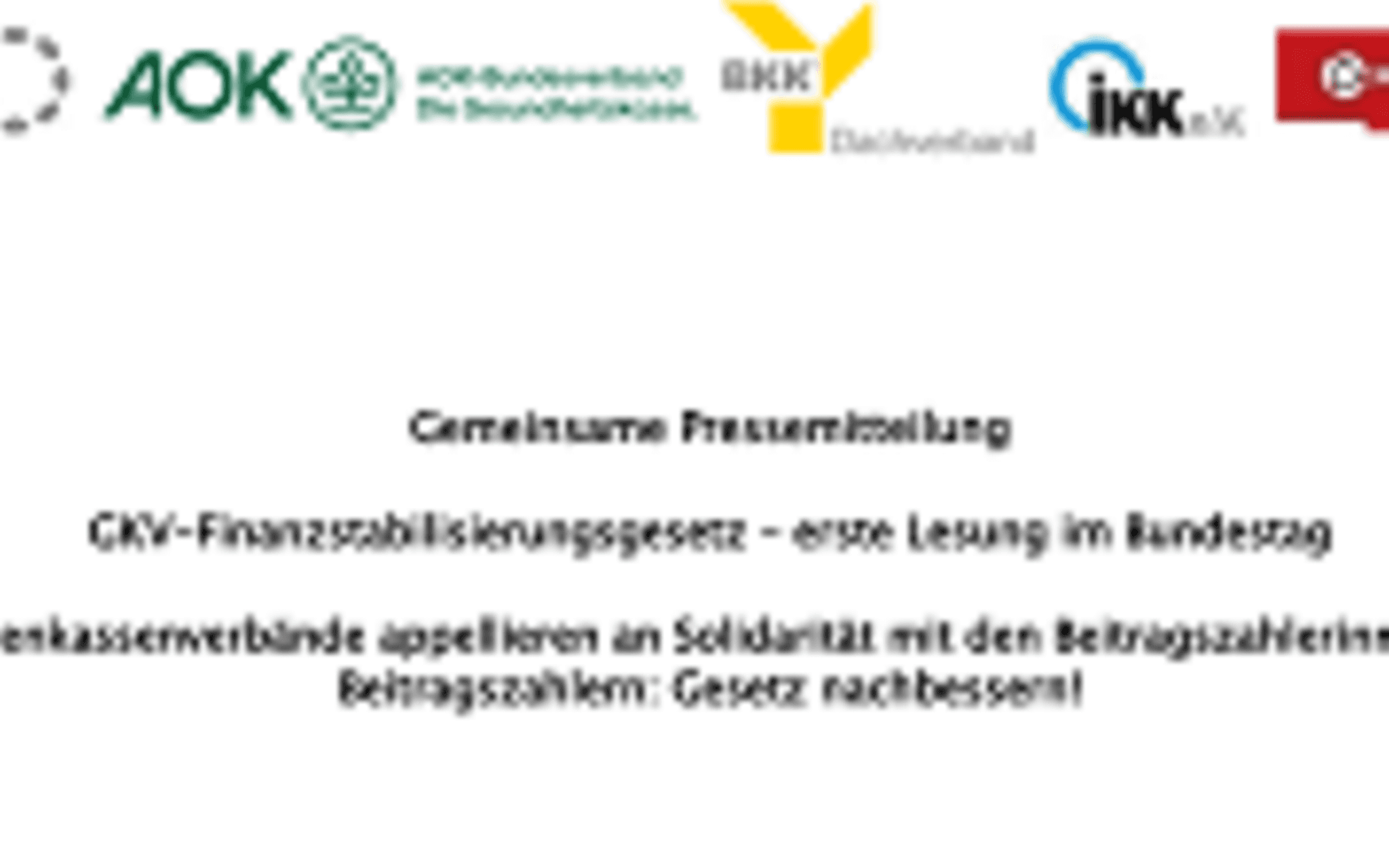 Krankenkassenverbände appellieren an Solidarität mit den Beitragszahlerinnen und Beitragszahlern: Gesetz nachbessern!