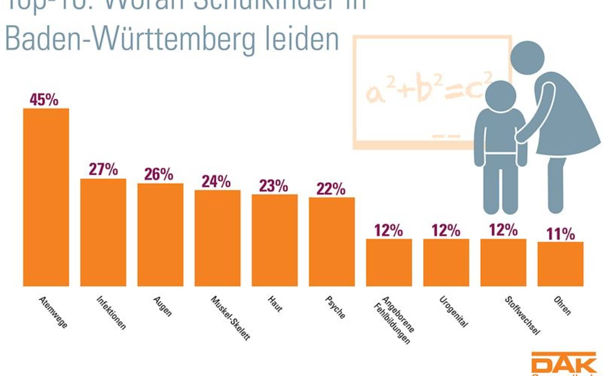 22 Prozent aller Jungen und Mädchen im Alter von 10 bis 17 Jahren in Baden-Württemberg sind von einer psychischen Erkrankung oder Verhaltensstörung betroffen. Vor allem jüngere Schulkinder fallen am häufigsten durch Entwicklungsstörungen auf, zu denen Sprach- und Sprechstörungen gehören. Auch Verhaltensstörungen wie etwa ADHS sind verbreitet. Seltener, aber von hoher Relevanz für die Versorgung, sind affektive Störungen, zu denen auch die Depressionen gehören. 1,9 Prozent aller DAK-versicherten Jungen und Mädchen im Alter von 10 bis 17 Jahren sind so stark betroffen, dass sie einen Arzt aufsuchen. Im Vergleich zum Vorjahr ist die Häufigkeit der Diagnose „Depression“ 2017 in Baden-Württemberg um fünf Prozent gestiegen. Mädchen leiden deutlich häufiger als Jungen. Mit einer diagnostizierten Angststörung kämpfen 2,2 Prozent aller Schulkinder. Hochgerechnet auf alle Kinder und Jugendlichen in Baden-Württemberg entspricht dies etwa 32.000 Betroffenen mit Angststörungen oder Depressionen. Diese Störungsbilder treten auch parallel auf: Jeder sechste Junge in Baden-Württemberg mit einer diagnostizierten Depression hat parallel auch eine Angststörung. Bei den Mädchen ist es fast jedes vierte.