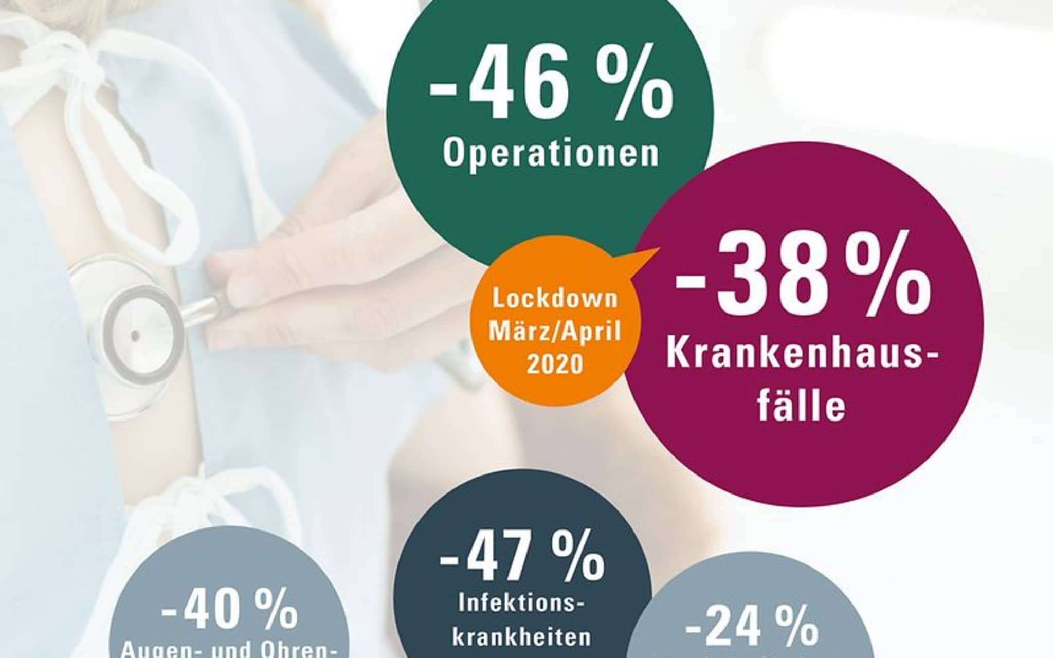 Bei den Kindern und Jugendlichen, die während des ersten Lockdowns in Baden-Württemberg stationär versorgt wurden, ging vor allem die Zahl der Infektionen (minus 47 Prozent) und der Augen- und Ohrenerkrankungen (minus 40 Prozent) zurück. Ursache waren laut Analyse der Universität Bielefeld die Kontaktbeschränkungen für Kinder und Jugendliche, wodurch es zu weniger Ansteckungen kam. Auch Infektionen der oberen Atemwege (minus 41 Prozent) waren stark rückläufig. Bei ernsthaften Diagnosen wie Krebserkrankungen gab es keinen Rückgang.