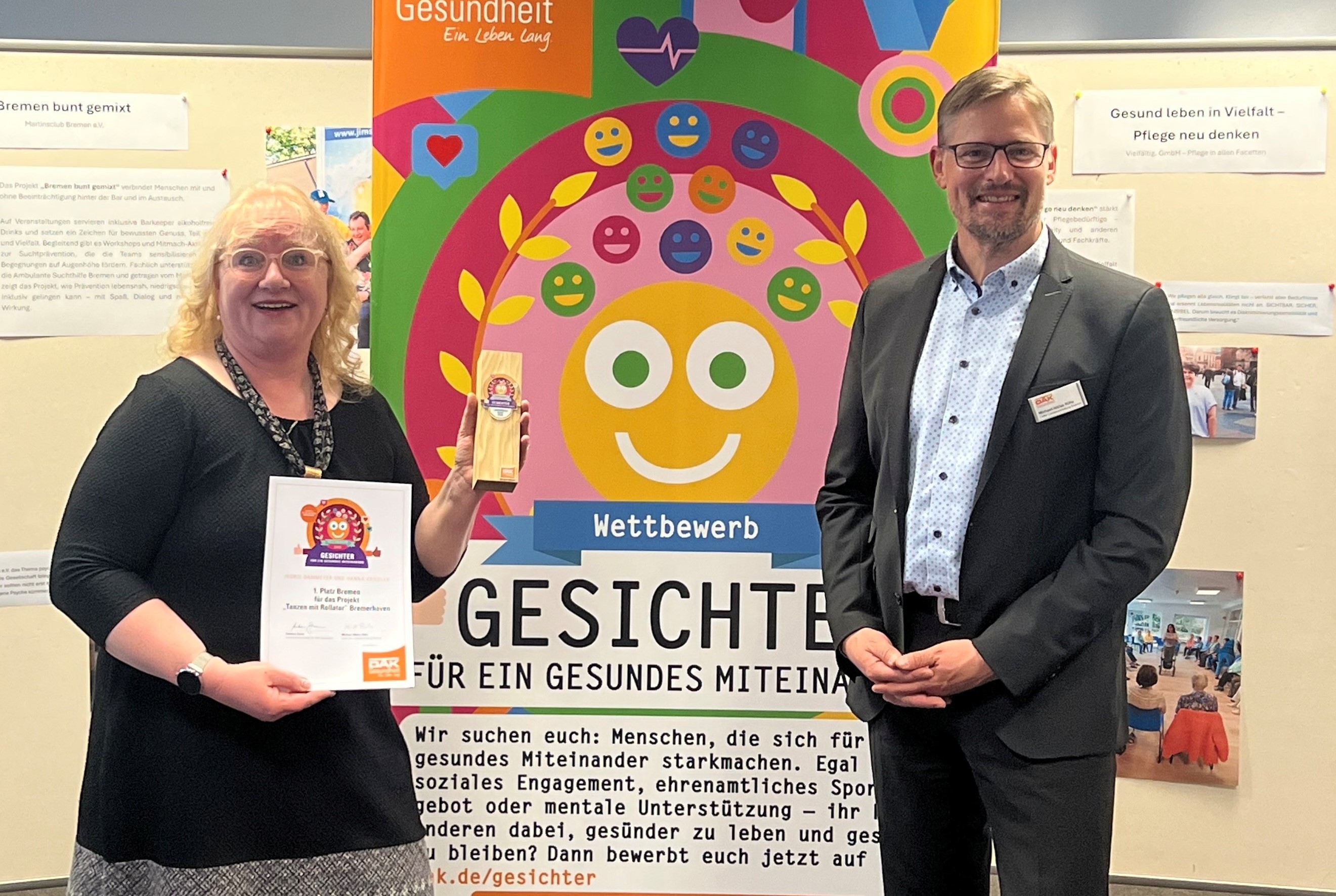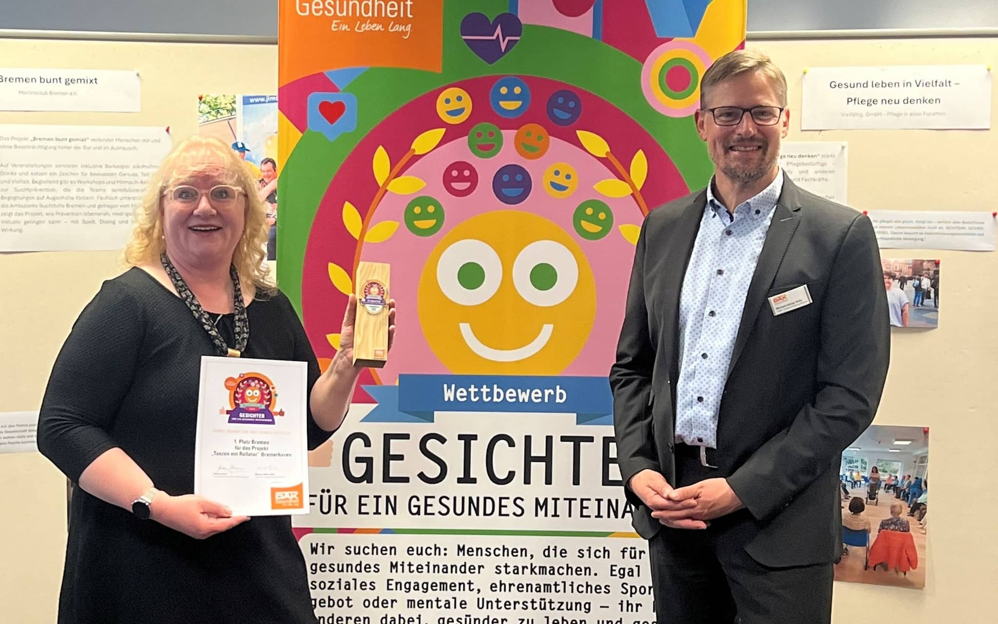 Gesucht waren im vierten Wettbewerbsjahr Menschen, die sich in den Bereichen Gesundheit, Prävention und Pflege engagieren und so ein gesundes Miteinander fördern. Den ersten Platz belegte das Projekt „Tanz mit dem Rollator“. Mit dem besonderen Bewegungsprojekt wird der Rollator neu entdeckt, nicht nur als Gehhilfe, sondern als Sportgerät. Nach einer Einführung zur richtigen Einstellung des Rollators trainieren die Teilnehmenden zu Musik Kraft, Koordination und Gleichgewicht. Im Mittelpunkt stehen Freude an Bewegung, Gemeinschaft und Lebenslust. Der Rollator wird zum Symbol für Aktivität und Selbstbestimmung im Alter. Weitere Informationen gibt es hier diakonie-bhv.de/tanzmitrollator