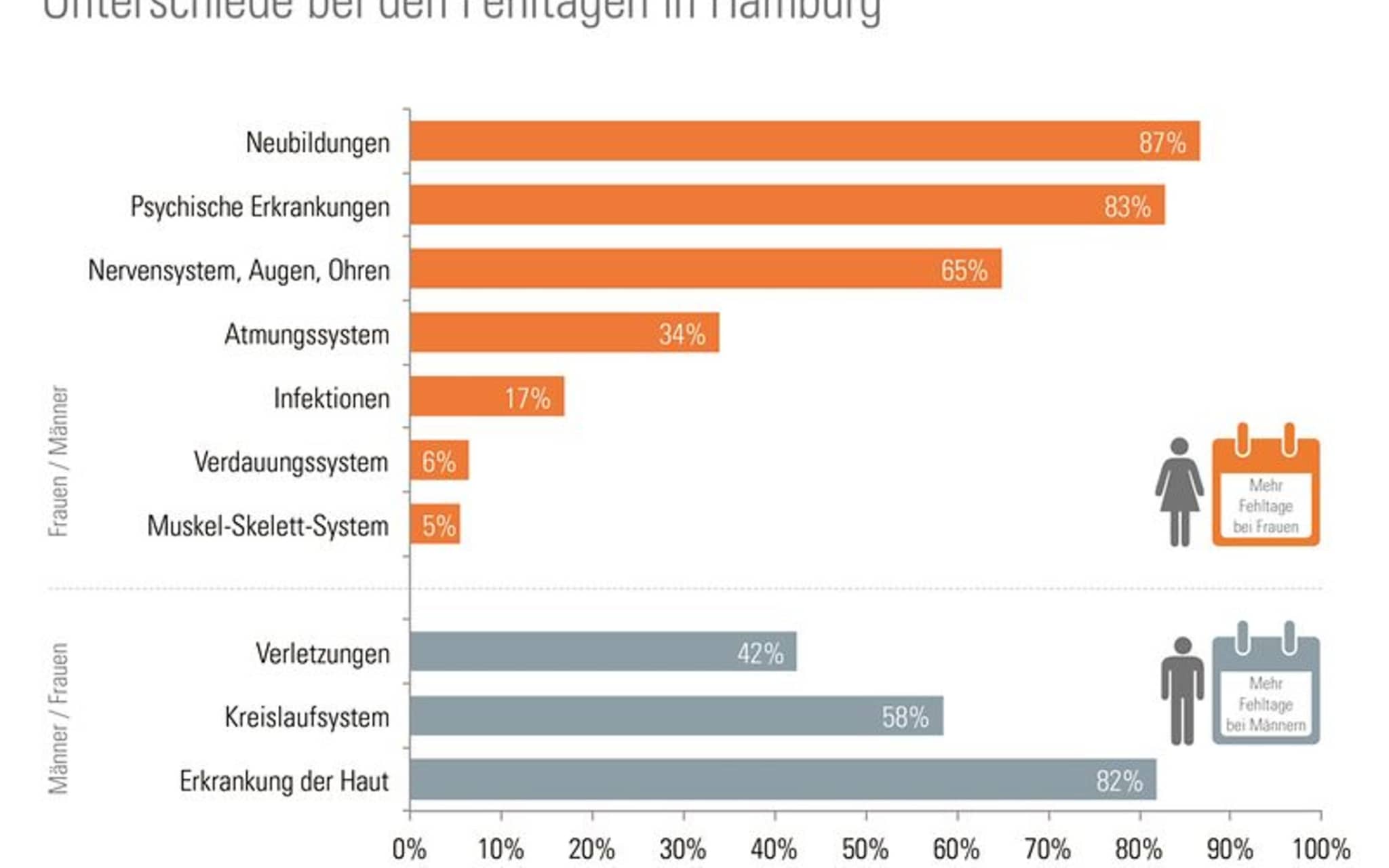 Hamburg: Frauen haben 27 Prozent mehr Fehltage als Männer