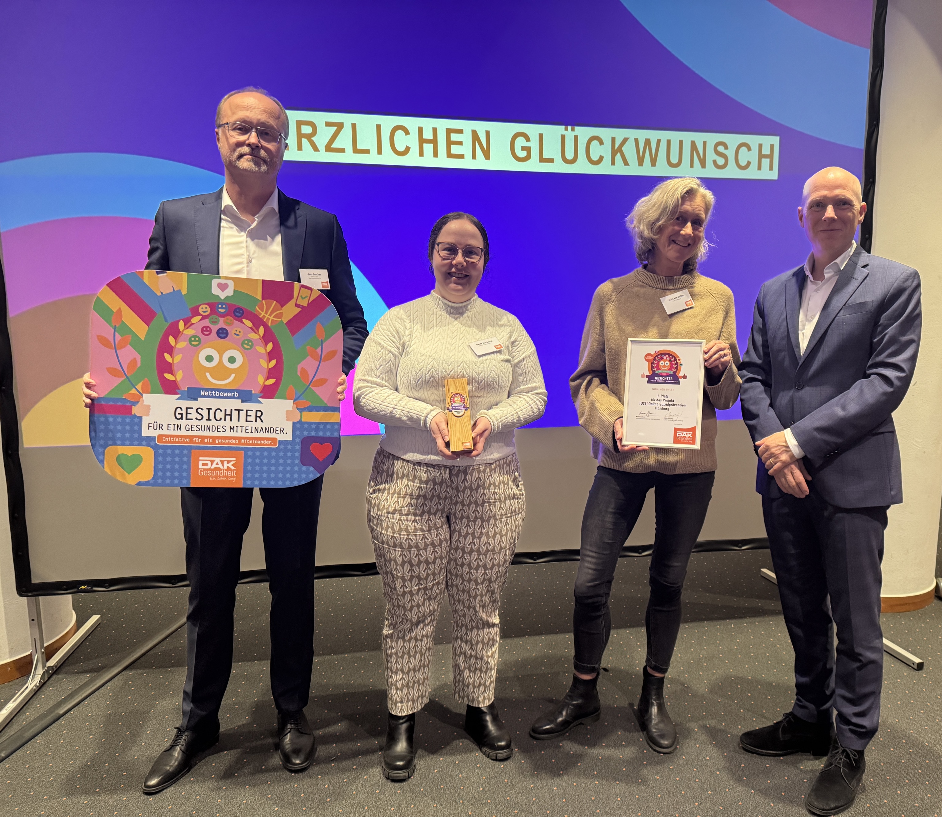 Hamburg, 17. November 2025. „Gesichter für ein gesundes Miteinander“: Unter diesem Motto haben bundesweit rund 500 Projekte und Initiativen an einem Wettbewerb für besonderes Gesundheitsengagement teilgenommen. Das Projekt [U25] aus Hammerbrook gewann den Landeswettbewerb 2025. Platz zwei ging an die „KALLE Beratungsstelle“ aus St. Georg. Den dritten Platz belegte die Initiative „Alzheimer Telefon“ aus Wandsbek. Der Sonderpreis Pflege geht an „Radeln mit LUISA und ELISA“ aus Eppendorf. Die DAK-Gesundheit zeichnete die Gewinnerinnen und Gewinner aus.