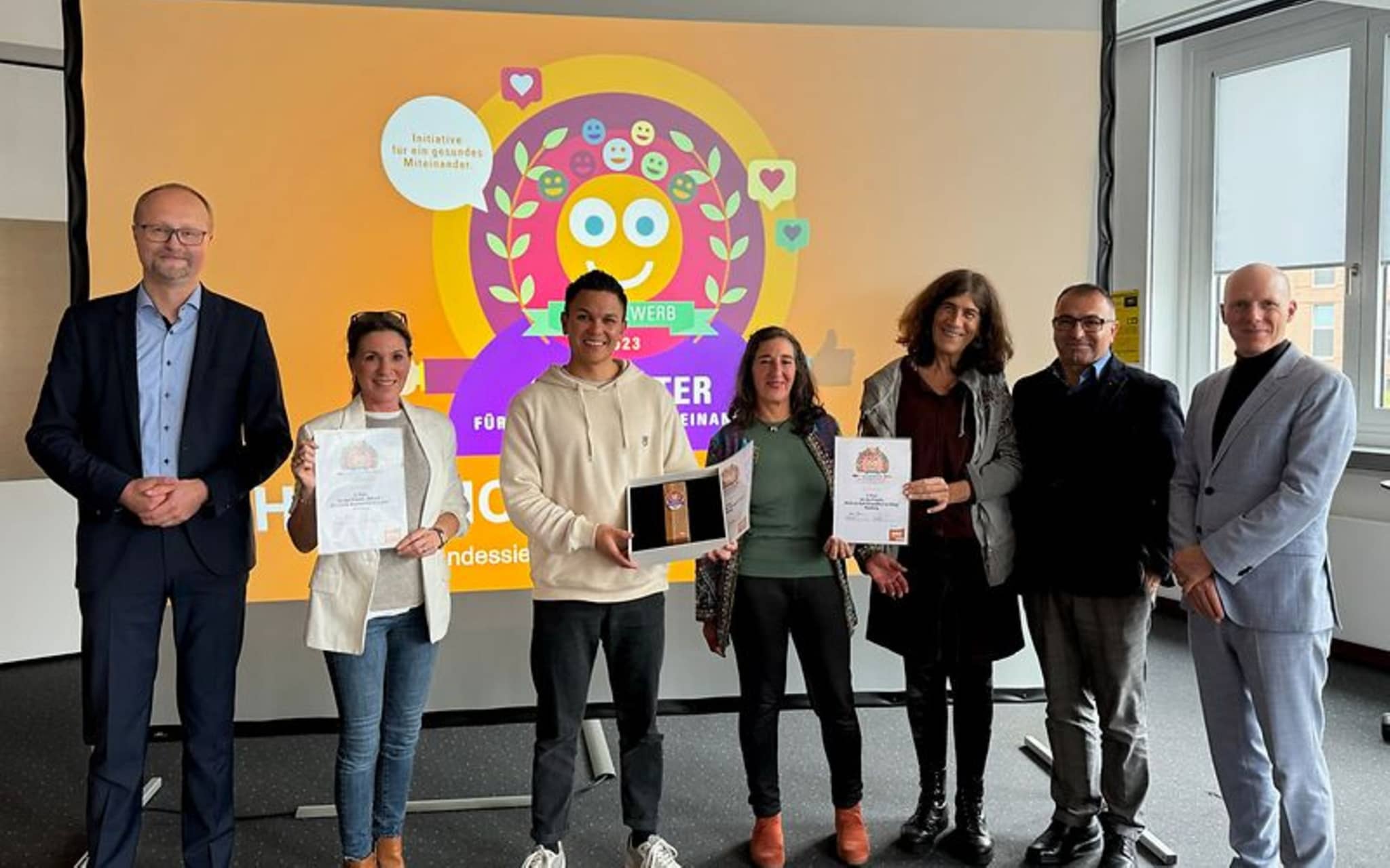 Hamburg, 13. Oktober 2023. „Gesichter für ein gesundes Miteinander“: Unter diesem Motto haben bundesweit mehr als 200 Projekte und Einzelpersonen an einem Wettbewerb für besonderes Gesundheits-Engagement teilgenommen. In Hamburg gewann Patrick Decavele aus Altona mit seinem Projekt „Wir bewegen Schule“ den Landeswettbewerb 2023. Platz zwei ging an die Patienteninitiative NIK – Netzwerk Autoimmunerkrankter e.V. aus Winterhude. Den dritten Platz belegte Isabel Marin aus Hamburg-Altona mit dem Alltags-Projekt „Bleib am Ball/Gesundheit im Alltag“. Hamburgs Staatsrat für Gesundheit, Tim Angerer und die DAK-Gesundheit zeichneten nun die Gewinnerinnen und Gewinner aus.