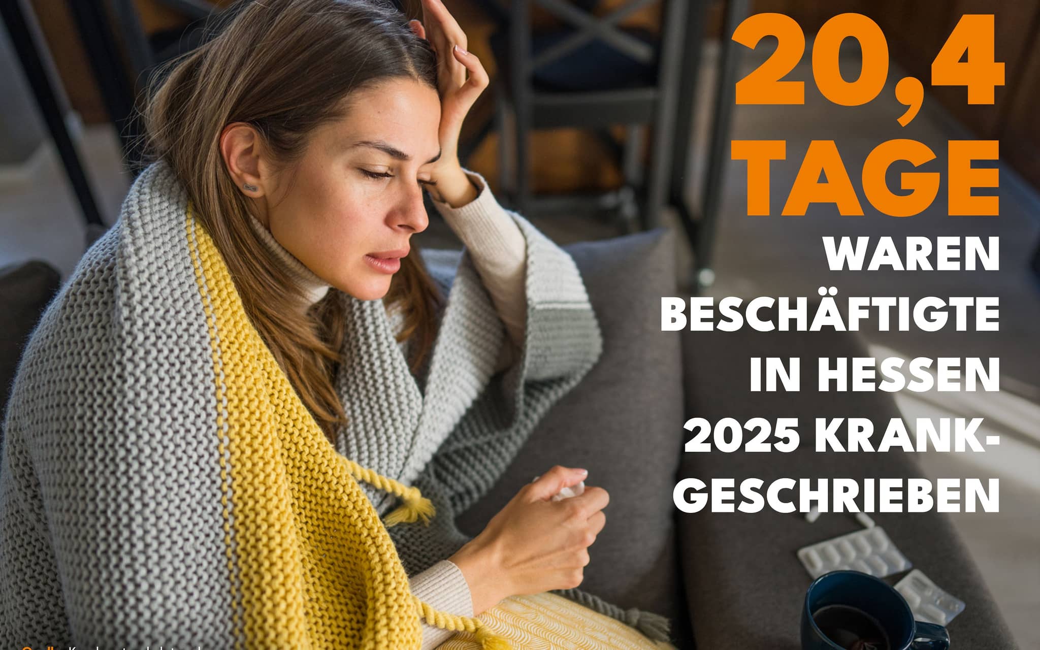 Frankfurt, 27. Januar 2026. Der Krankenstand in Hessen ist 2025 im Vergleich zum Vorjahr stabil geblieben. DAK-versicherte Beschäftigte waren durchschnittlich an 20,4 Kalendertagen krankgeschrieben und hatten demnach genauso viel Arbeitsausfall wie im Vorjahr. Die meisten Fehltage gingen auf das Konto von Atemwegserkrankungen, gefolgt von psychischen Erkrankungen. Diese verursachten 10 Prozent mehr Fehltage als 2024. Auf Rang drei landeten Muskel-Skelett-Erkrankungen. Insgesamt pendelt sich der Krankenstand in Hessen auf einem hohen Niveau ein. Deshalb fordert die DAK-Gesundheit eine fundierte Ursachenforschung. Arbeitgeber, Gewerkschaften, Ärzteschaft und Krankenkassen sollten gemeinsam an einen Tisch kommen, um neue Lösungswege zu entwickeln und auch ein gesundes Arbeitsumfeld in den Fokus zu rücken.