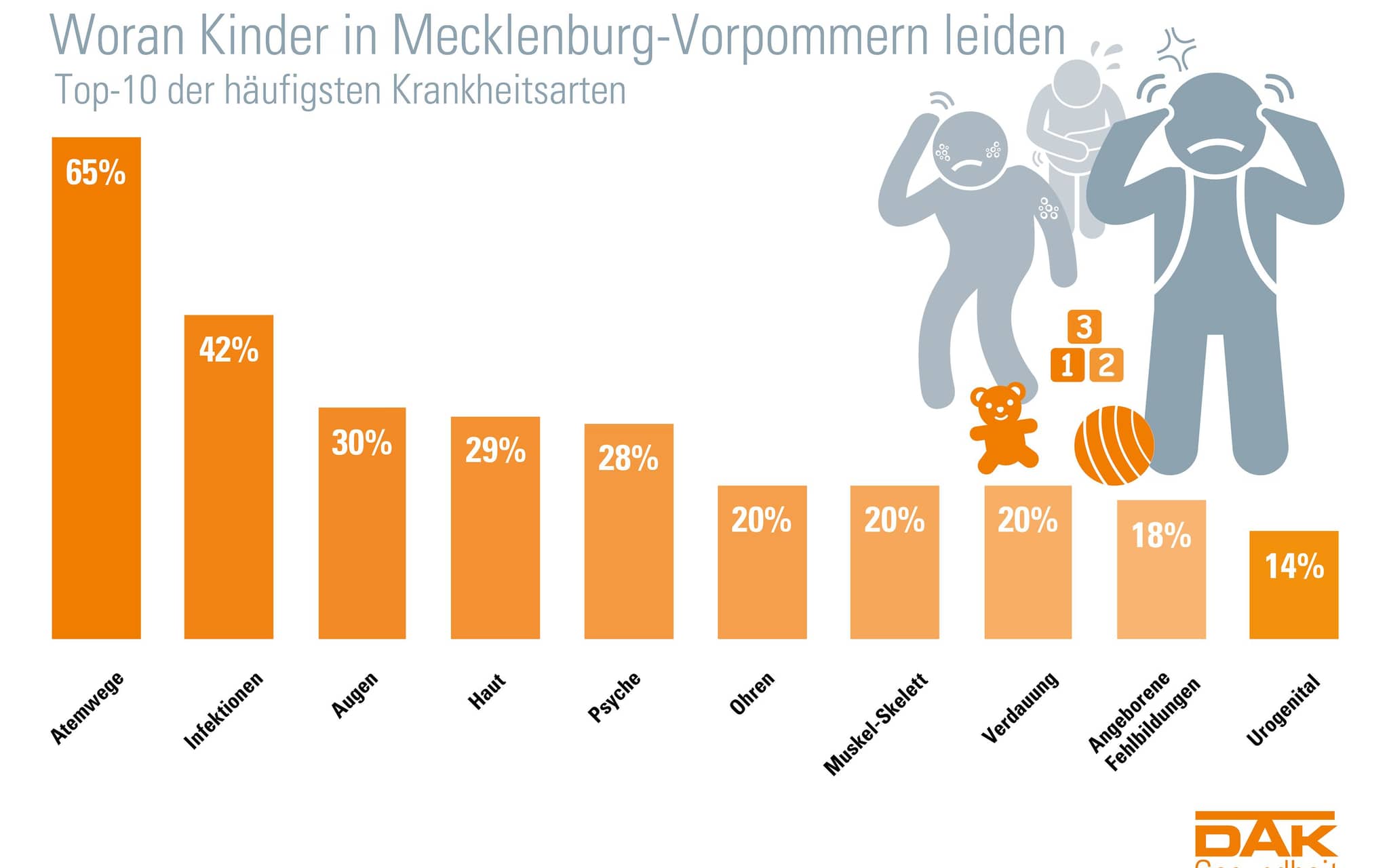 Die DAK-Gesundheit ist eine der größten Krankenkassen Deutschlands. Für die Analyse wurden die Daten von 18.660 minderjährigen Versicherten der DAK-Gesundheit in Mecklenburg-Vorpommern durch die Universität Bielefeld ausgewertet.