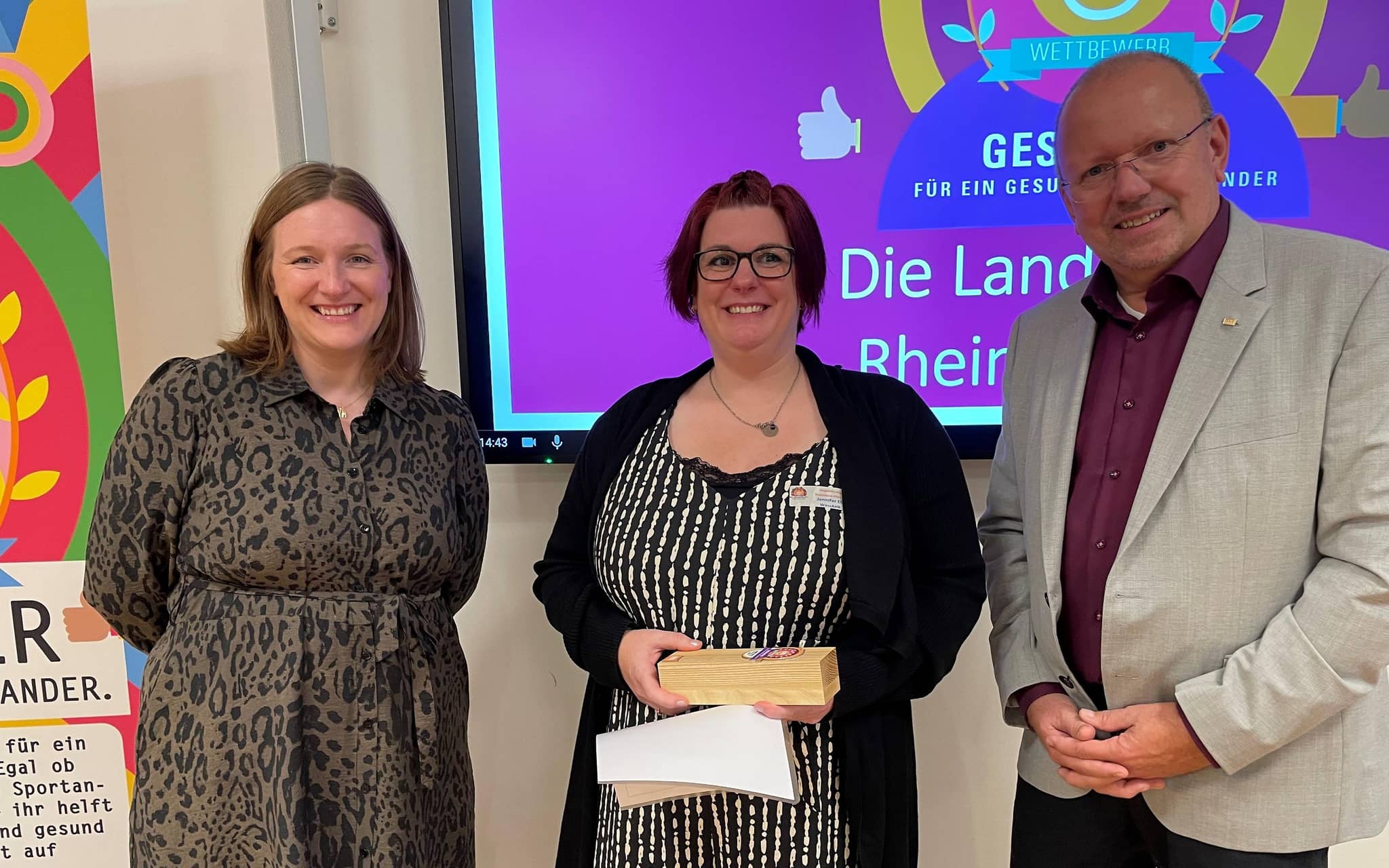 - (von links: Katharina Binz, rheinland-pfälzische Familienministerin und Schirmherrin, Jennifer Eller, Siegerprojekt „WassAHR positiv erfahren e.V.“, Rainer Lange, Leiter der DAK-Landesvertretung Rheinland-Pfalz)