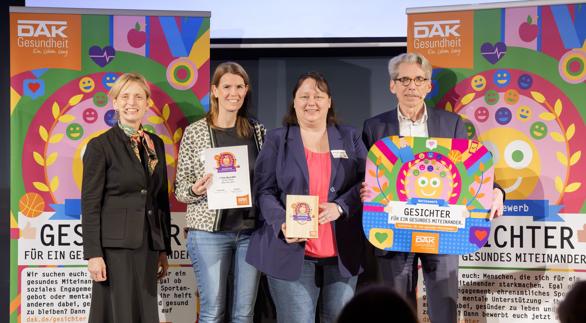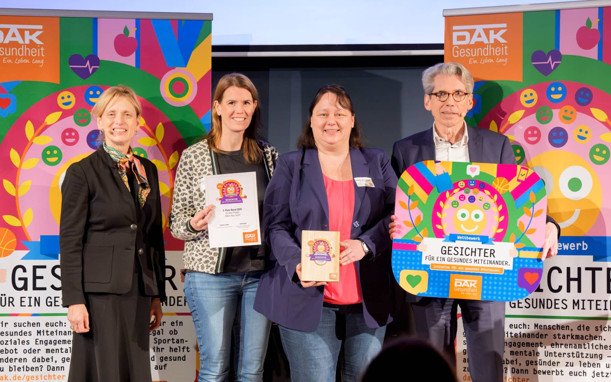 Der Bundessieg beim DAK-Wettbewerb „Gesichter für ein gesundes Miteinander“ ging an Dorothee van den Borre aus Nordrhein-Westfalen. Ihr Projekt „Clowns gegen Einsamkeit“ kümmert sich mit Humor um einsame, ältere Menschen in Pflegeheimen – und stärkt zugleich die Kinder und Jugendlichen selbst. Das Projekt erhält ein Fördergeld von 3.000 Euro. Der mit 2.000 Euro dotierte zweite Platz ging an „Pfoten weg!“ e. V.“ nach Schleswig-Holstein, das von Irmi Wette eingereicht wurde. Es stärkt seit über 20 Jahren Kinder in ihrem Selbstbewusstsein, indem sie lernen, „Nein“ zu sagen und sich Hilfe zu holen, wenn es nötig ist. Den mit 1.000 Euro dotierten Sonderpreis Pflege gewann die „Alzheimer Gesellschaft“ aus Niedersachsen, die Menschen mit Demenz während Klinikaufenthalten begleitet. Die Fördergelder werden den Gewinnerinnen und Gewinnern zur Weiterentwicklung ihrer Projekte zur Verfügung gestellt.