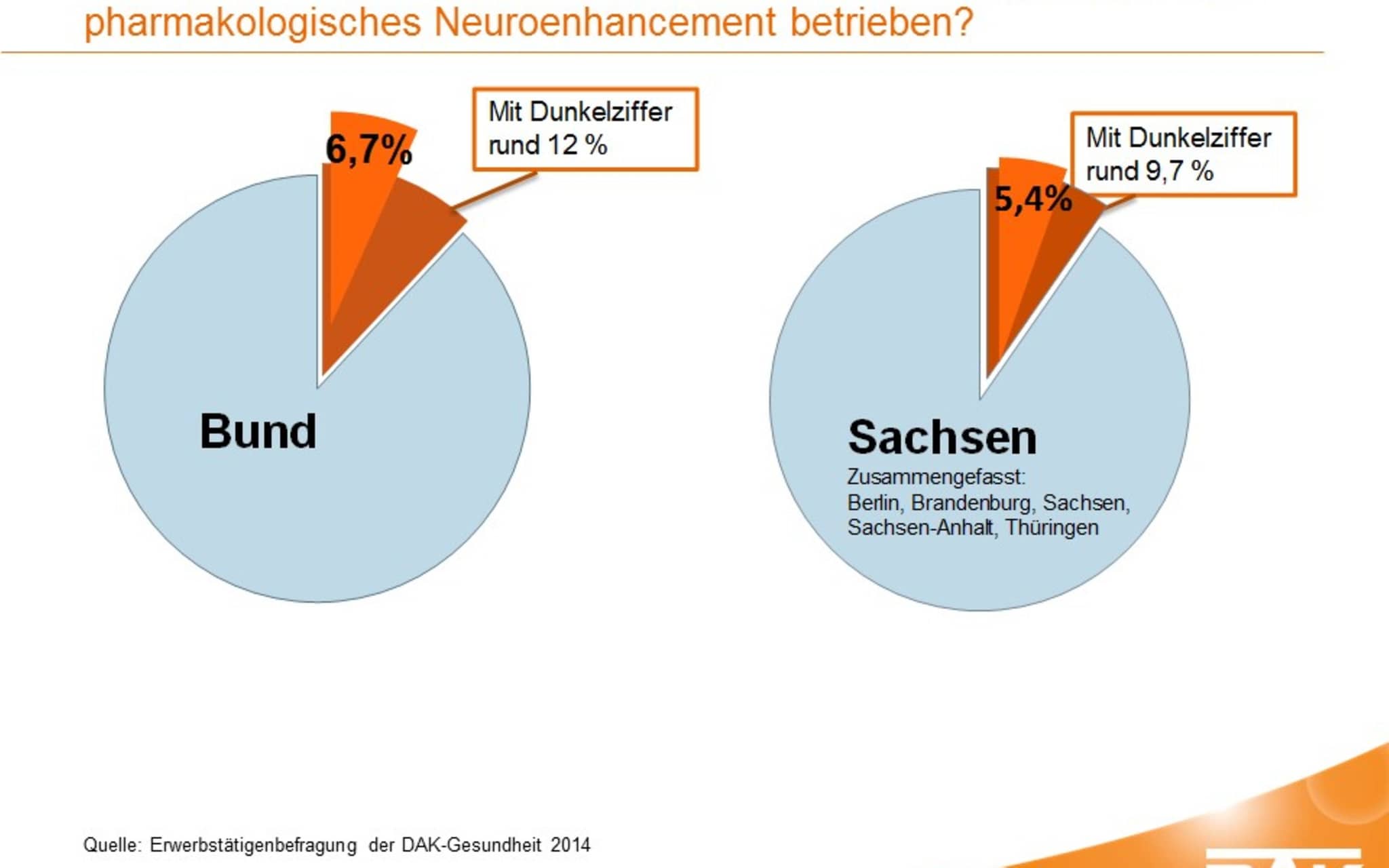 Für die repräsentative Studie wertete das IGES Institut die Fehlzeiten aller erwerbstätigen DAK-Mitglieder in Sachsen aus. Es wurden zudem Arzneimitteldaten der Kasse analysiert und bundesweit mehr als 5.000 Beschäftigte im Alter von 20 bis 50 Jahren befragt. Demnach haben sich 5,4 Prozent der Berufstätigen in Sachsen und den angrenzenden Bundesländern schon einmal gedopt – mit Dunkelziffer sogar bis zu 9,7 Prozent. Hochgerechnet auf die Erwerbstätigen in Sachsen sind das 196.000 Menschen, die schon einmal leistungssteigernde oder stimmungsaufhellende Medikamente geschluckt haben. Derzeit betreiben etwa 36.000 der Erwerbstätigen in Sachsen regelmäßig und gezielt Hirndoping. „Auch wenn Doping im Job noch kein Massenphänomen ist, sind diese Ergebnisse ein Alarmsignal“, warnt Steffi Steinicke, Landeschefin der DAK-Gesundheit in Sachsen. „Nebenwirkungen und die Suchtgefahr des Hirndopings sind nicht zu unterschätzen. Deshalb müssen wir auch beim Thema Gesundheit vorausschauen und über unsere Wertvorstellungen und Lebensstilfragen diskutieren.“