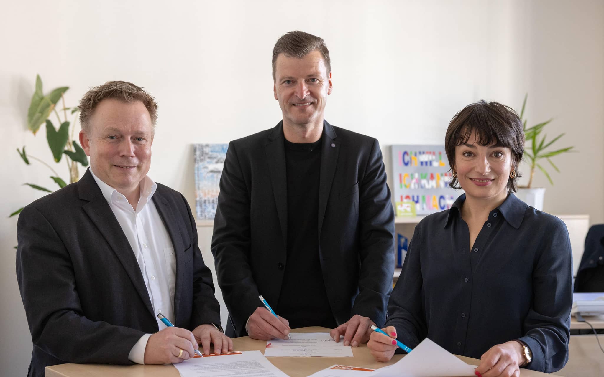 Vertragsunterzeichnung: v.l. Dr. Thomas Hurlebaus (UKL), Manuel Sorger (DAK-Gesundheit), Diana Neuberger (UKL)