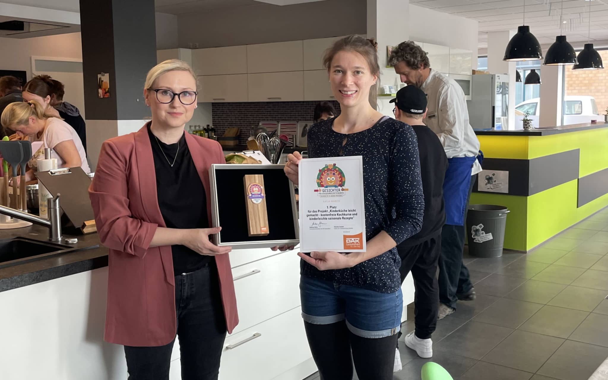 Gesucht waren im dritten Wettbewerbsjahr Menschen, die sich in den Bereichen Gesundheit, Prävention sowie Pflege engagieren und so ein gesundes Miteinander fördern. Mit dem Projekt „Kinderküche leicht gemacht“ überzeugte das Team um Sophie Stengel und Katja Warich die Landesjury. „Wir wollen Familien mit übergewichtigen Kindern den Zugang zu einer gesunden Lebensweise erleichtern und die Gesundheitschancen der Kinder mit Übergewicht und Adipositas verbessern“, erläuterte Sophie Stengel. „Neben dem regelmäßigen gemeinsamen Kochen wollen wir auch spielerisch theoretische Inhalte vermitteln. Die Teilnehmer erlernen durch das gemeinsame Zubereiten, Kochen und Besprechen der einzelnen Rezepte, ein gesundes Ess- und Ernährungsverhalten in ihre eigene Familie zu übertragen“, ergänzte Katja Warich. Mit dem gewonnenen Geldpreis von 750 Euro will der Verein ein kostenloses Kochbuch für die Familien entwickeln.