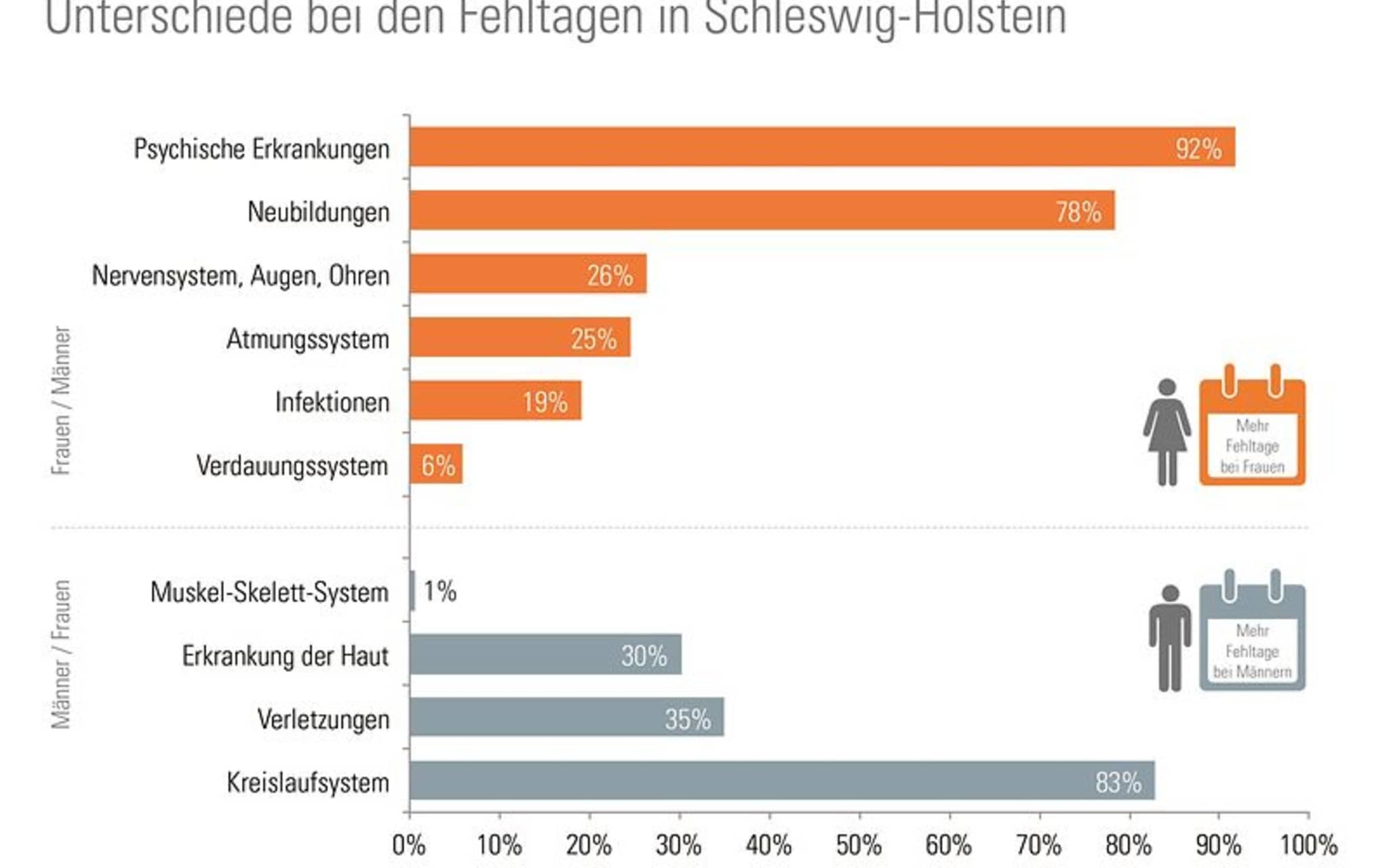 Schleswig-Holstein: Frauen haben 23 Prozent mehr Fehltage als Männer