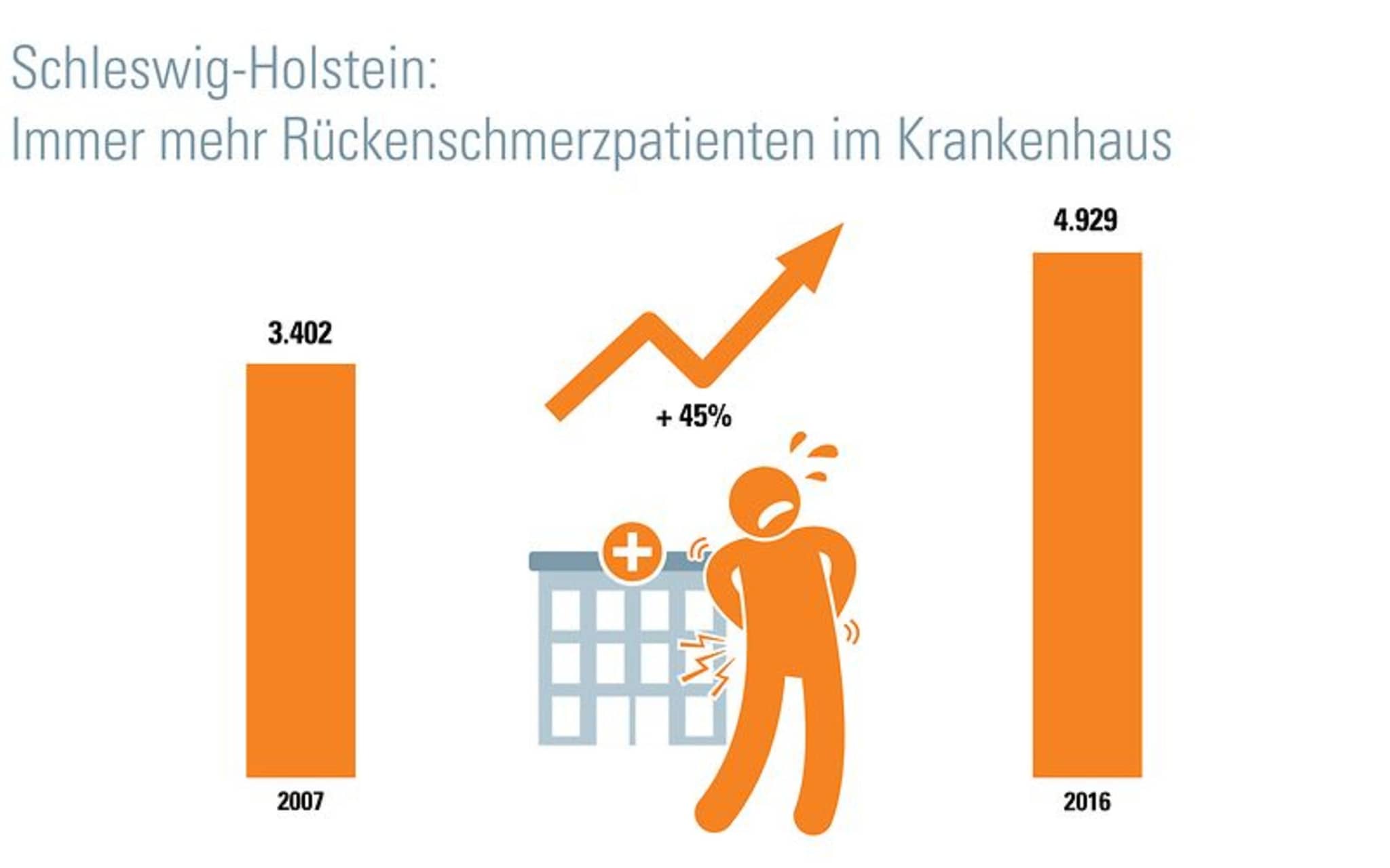 Die Problematik spiegelt sich auch in der stationären Behandlung wider: Schleswig-Holstein hatte 2016 mehr als 4.900 Krankenhausfälle wegen Rückenschmerzen, ein Anstieg um rund 45 Prozent in den vergangenen neun Jahren. Der DAK-Report untersucht erstmals detailliert, wie