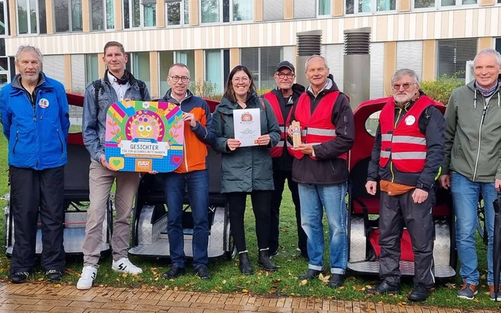 Daniel Günther, Ministerpräsident und Schirmherr der Kampagne in Schleswig-Holstein, sagte: „Alle Projekte, die bei dem Wettbewerb ‚Gesichter für ein gesundes Miteinander‘ mitgemacht haben, sind echte Gewinner und vor allem: ein echter Gewinn für unsere Gesellschaft. Dafür gilt allen mein herzlicher Dank. Das erstplatzierte Projekt ‚Radeln ohne Alter e.V.‘ verkörpert auf großartige Weise das Motto des Wettbewerbs. Mithilfe von körperlicher Bewegung an der frischen Luft – und dazu noch umweltfreundlich – bieten ehrenamtlich Engagierte Rikscha-Fahrten für Passagiere im hohen Alter an zu Lieblings-Menschen und Lieblings-Orten. Damit ermöglichen sie ihnen buchstäblich ein gesundes Miteinander. ‚Radeln ohne Alter e.V.‘ ist ein Projekt mit Einfallsreichtum, Herz und einem großen Verständnis für die Lebenssituation mobilitätseingeschränkter Menschen. Herzlichen Glückwunsch zu der Auszeichnung mit dem ersten Platz!“
